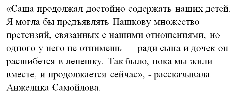 Пашков поддерживает теплые отношения с детьми от первого брака и помогает бывшей жене, оставаясь ответственным отцом.